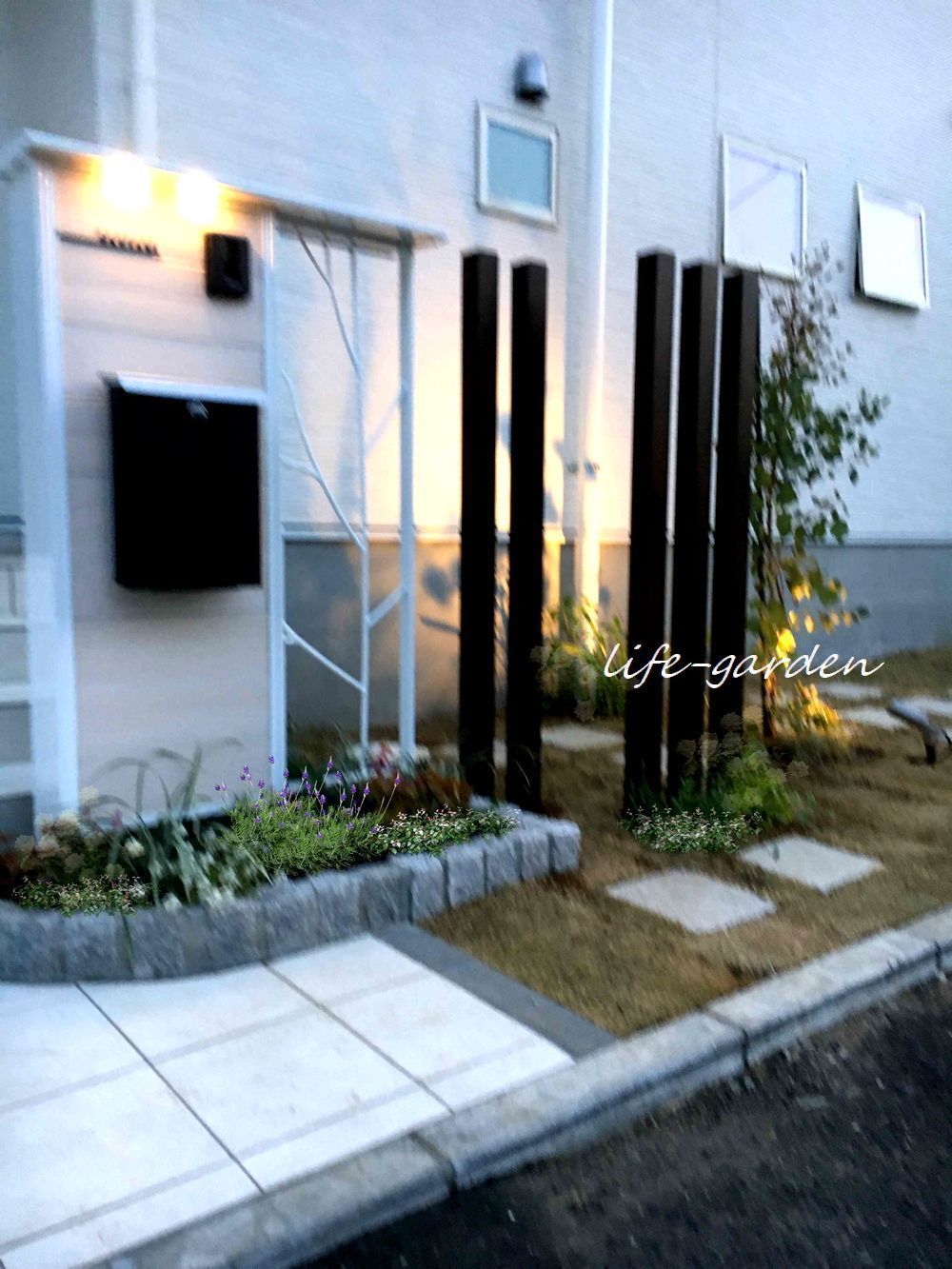 昼と夜に2つの表情を持つO様邸のお庭になりました。